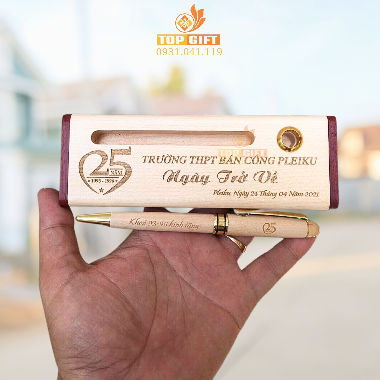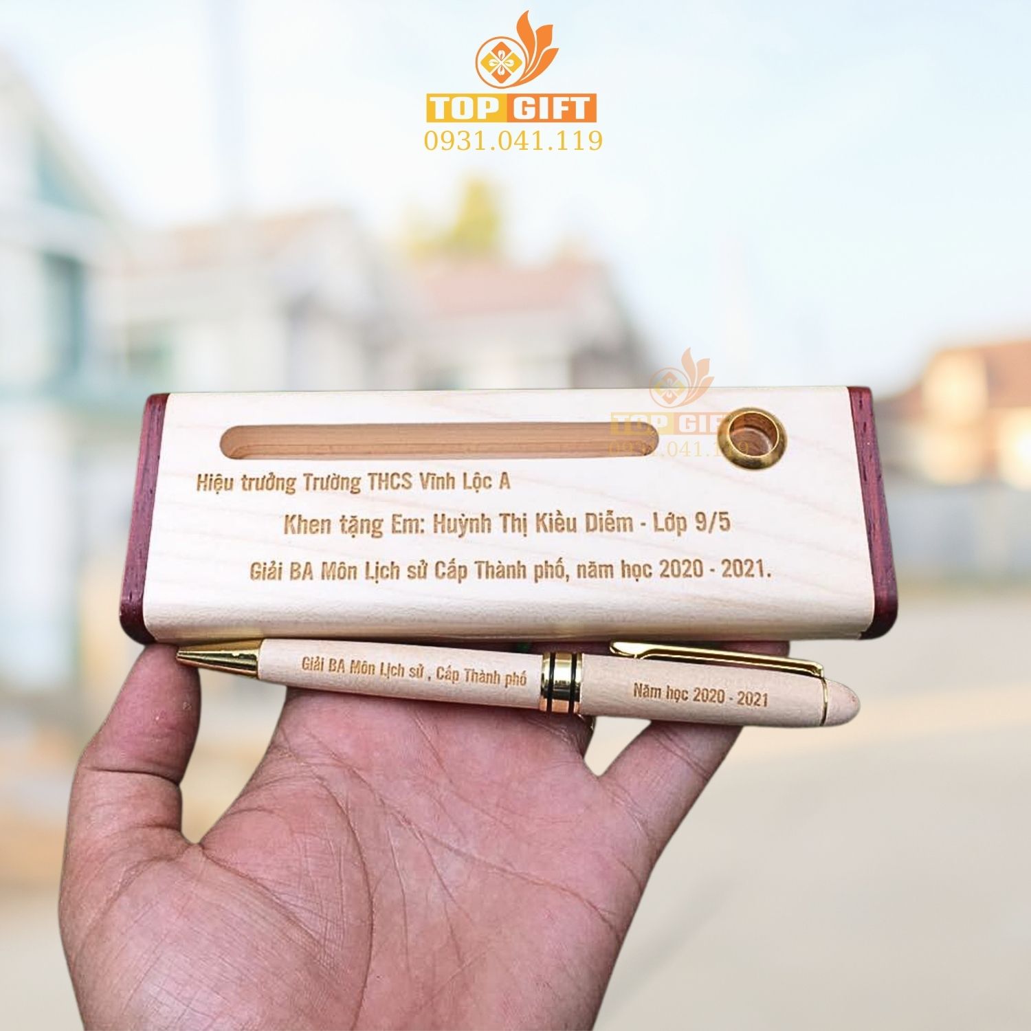 Gía combo hộp bút gỗ khắc tên theo yêu cầu tại TopGift