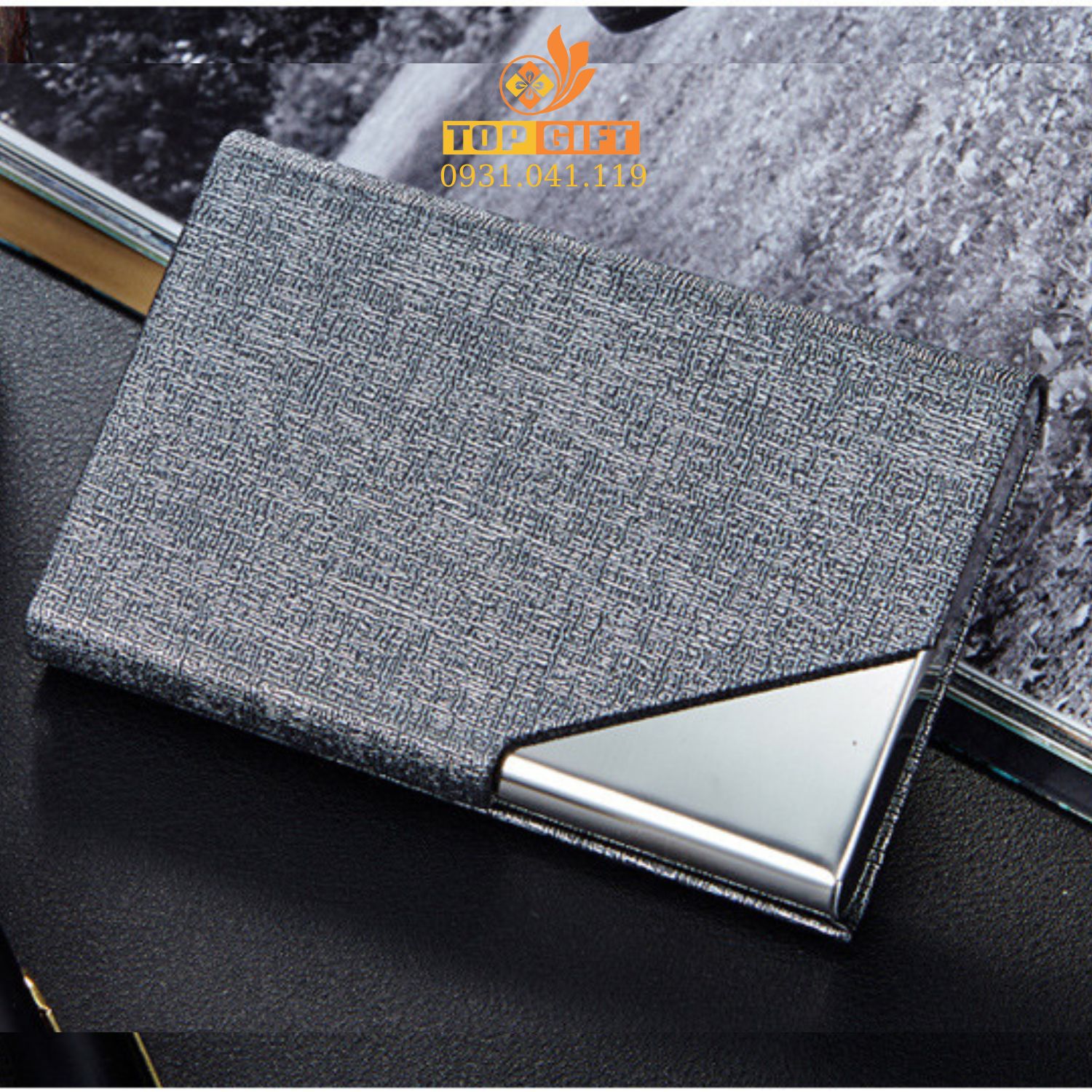 Sản phẩm: Hộp đựng danh thiếp da PU màu xám NC017