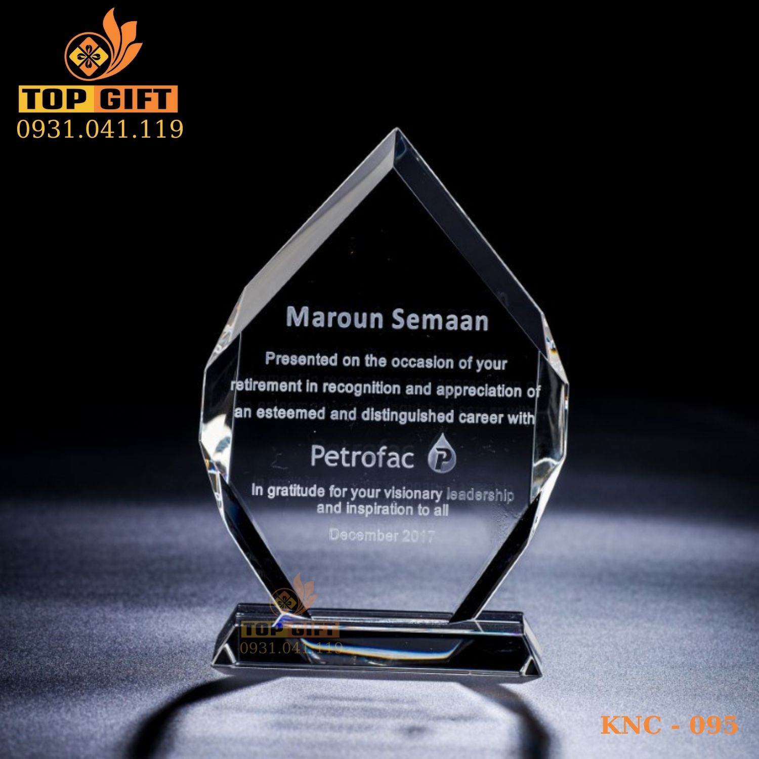 Sản phẩm được chế tác bằng công nghệ khắc laser và khắc CNC tiên tiến, đảm bảo độ chính xác và sắc nét đến từng chi tiết. Logo doanh nghiệp và các thông điệp được khắc sâu vào pha lê với độ rõ nét cao, mang đến sự chuyên nghiệp và tinh tế. Công nghệ hiện đại này còn cho phép tạo ra những thiết kế phức tạp và đa dạng, đáp ứng mọi yêu cầu của khách hàng.