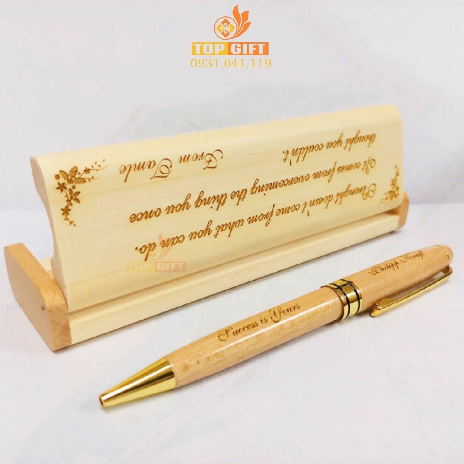 Gần đây, bút gỗ khắc tên được sử dụng khá phổ biến để làm quà tặng vào các dịp sinh nhật, lễ quan trọng,…Nhiều doanh nghiệp còn sử dụng như một phương tiện marketing mang lại nhiều hiệu quả. Điều đặc gây hứng thú với loại bút này là chất liệu của bút và hộp bút được làm từ gỗ Mapple xuất khẩu hoàn toàn tự nhiên và gần gũi với thiên nhiên. Chính vì sự thú vị này mà bút nhận được nhiều sự ưa chuộng của mọi người. Vậy bạn luôn đặt câu hỏi “Giá của bút gỗ khắc tên là bao nhiêu?” mà lại được sử dụng phổ biến như vậy. Để mua được chúng với giá rẻ thì mua ở đâu? Khắc tên trên bút gỗ có lâu không? Để giải đáp được các thắc mắc này chúng ta cùng tìm hiểu nhé!