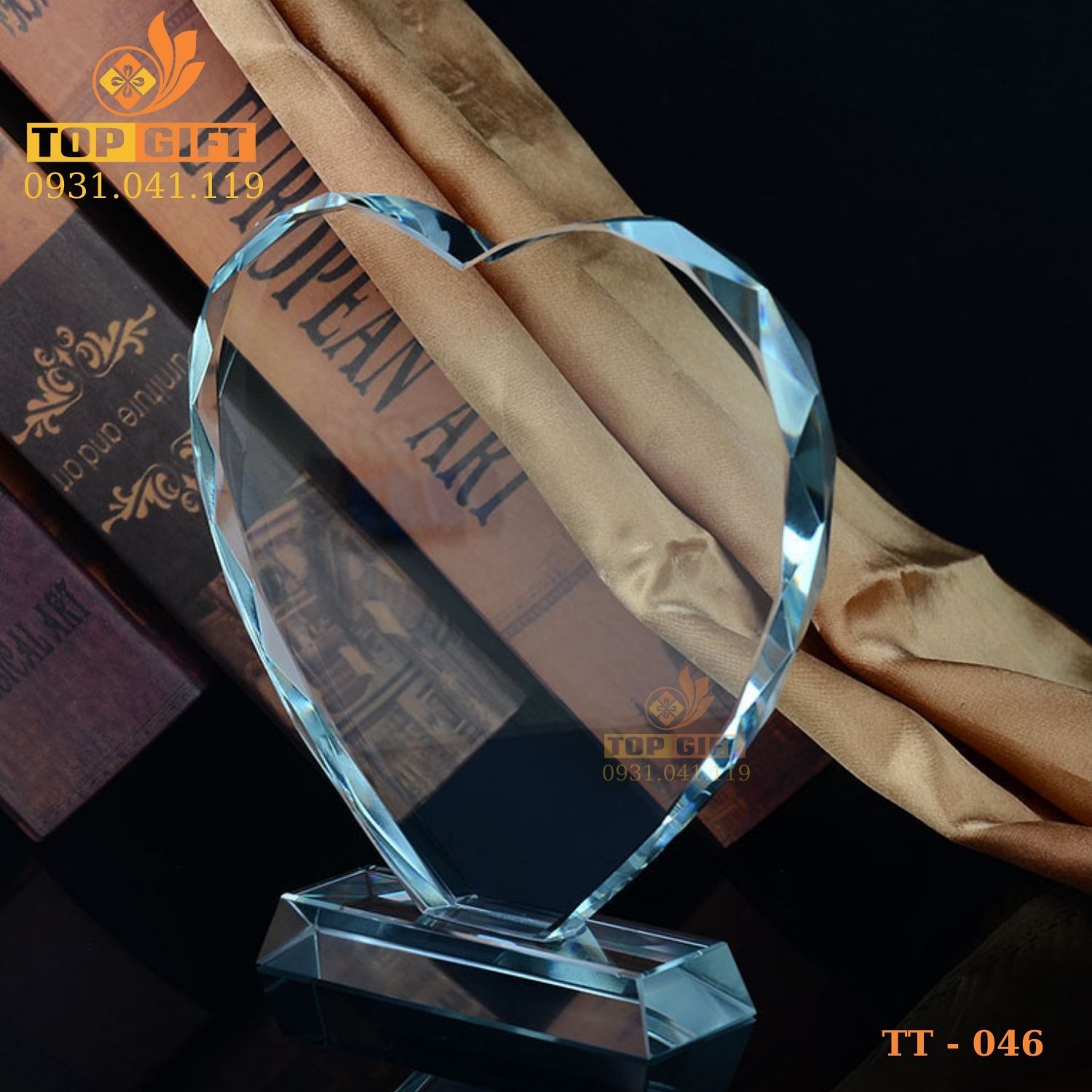 Trái tim là một biểu tượng nổi bật nhất, đại diện cho tinh thần nhân đạo. Chính vì thế những chiếc kỉ niệm chương hình trái tim cũng được đông đảo khách hàng Việt lựa chọn. Chất liệu phổ biến để gia công là thủy tinh. Đường nét và góc cạnh được gia công hết sức cẩn thận, tỉ mỉ. Chúng có nhiều bản thiết kế khác nhau tạo nên sự thu hút từ mọi góc nhìn.