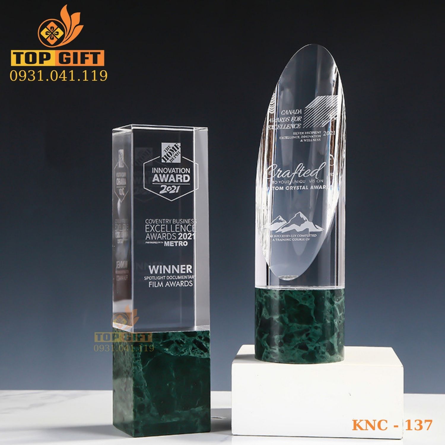Thiết kế dạng khối sắc nét, biểu tượng cho sự ổn định, mạnh mẽ và bền vững. Pha lê trong suốt mang đến sự tinh tế và uy nghi. Phù hợp để vinh danh các cá nhân có thành tích xuất sắc và những cống hiến nổi bật trong năm qua.