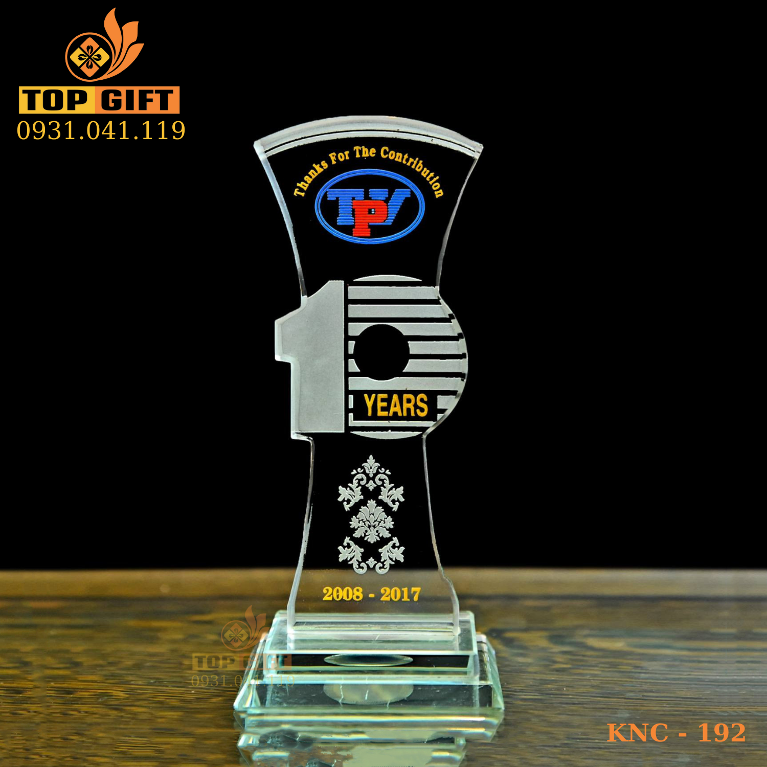 Kỷ niệm chương pha lê với logo công ty được khắc tinh xảo mang ấn tượng trang trọng và tinh tế. Giúp ghi dấu ấn cho thương hiệu và tạo sự uy tín trong lòng khách hàng, đối tác.