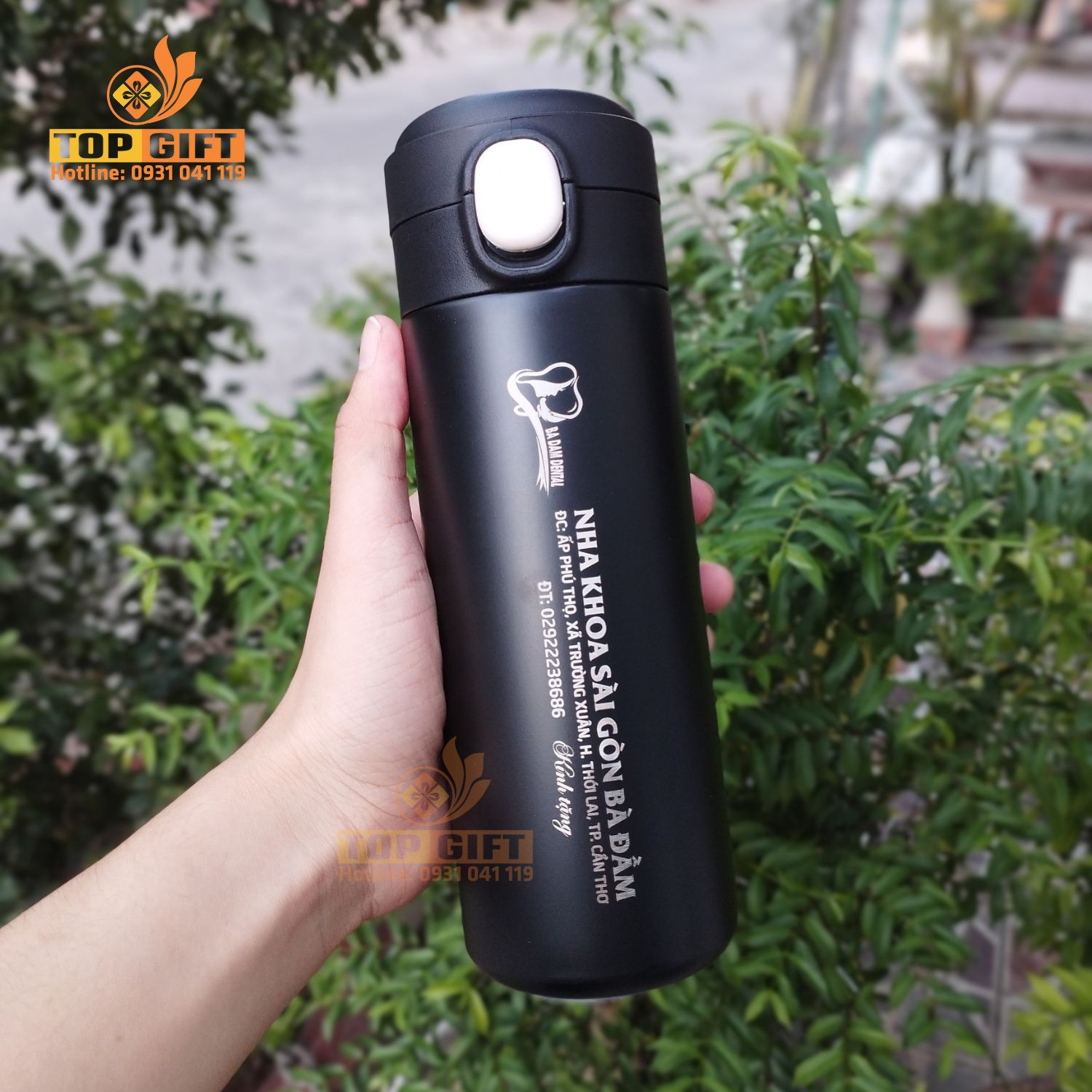 Bình giữ nhiệt cao cấp, in logo của doanh nghiệp, tiện lợi và thân thiện với môi trường. Khách hàng có thể sử dụng hàng ngày. Thể hiện sự quan tâm của doanh nghiệp đến sức khỏe và tiện ích của khách hàng. Đồng thời là cách quảng bá thương hiệu hiệu quả.